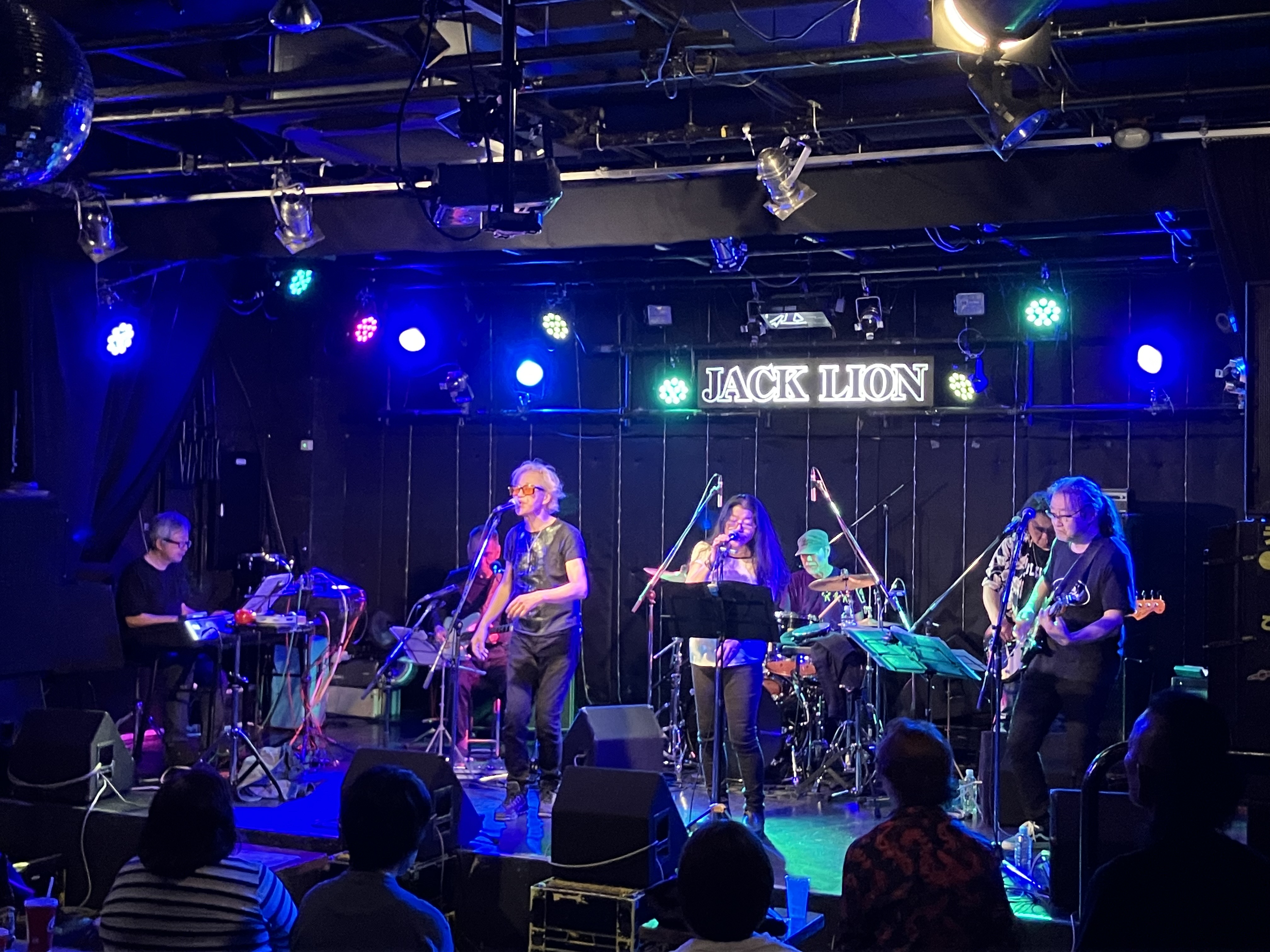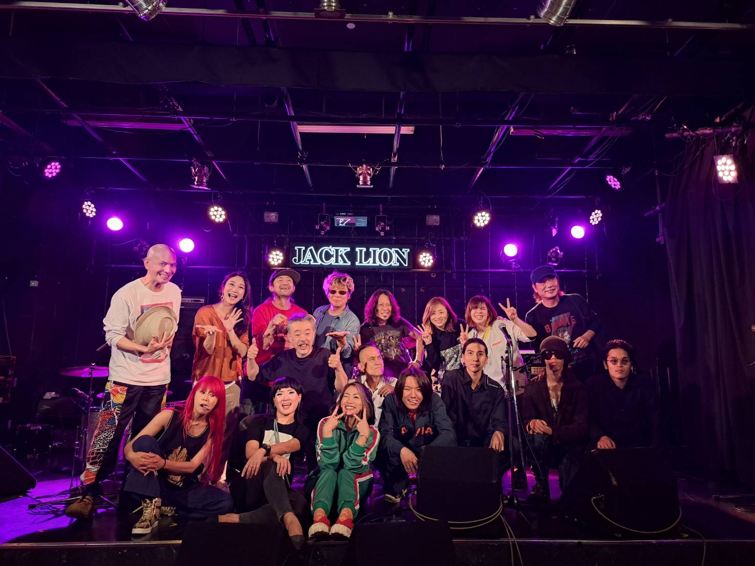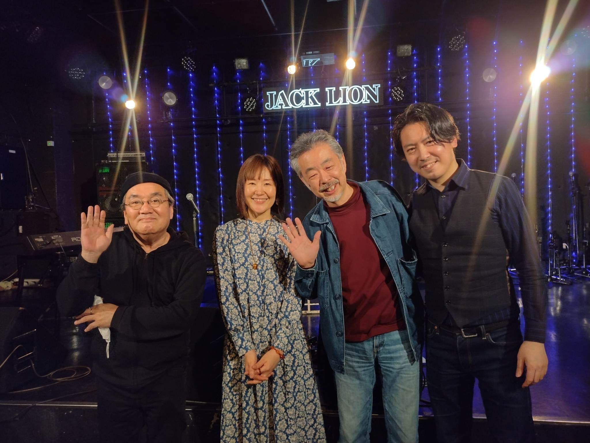 ◆2024/9/17(火) トラちゃんオノちゃんの『前を隠せ』 出演:トラちゃんオノちゃん メンバー:TORA(Vo&AG)/ジェームス小野田(Vo/米米CLUB) オープニングアクト:山本新 トラさんと初めてお会いしたのは2003年9月28日。なんともう20年超えてた! その間でトラさんを通じて実に多くの方に出会わせてもらってて、今回はなんと米米CLUBのジェームス小野田さん。 よく「ジャックライオンはお金あるなぁ」って24年も経ってるのにいまだに言われることがあります。 プロ=お金って思う方も多いのはわかりますが、ジャックライオンも眞柴もお金持ってません。(常連さんは周知の事実) 【でもこうやっていろんな方がここに来てもらえるのはみなさんよく理解していただいてるから】 今回はトラさんがその人! そもそも米米CLUBのメンバーさんとの縁があるのもトラさん。 以前書いたベーシストの江川ほーじんさんもトラさん。 そのほか大先輩ブレッド&バターのフユミさんともお話しさせていただいたり。 とにかくトラさんと出会ってなかったら起きてないことだらけで。 そして何よりトラさんの才能やセンス、そして努力される姿の魅力が最大のきっかけ!!トラさん自身これまでも多くのテレビ主題歌やCMソングを歌われてます。出会う前の昔懐かしいジャングルTV~タモリの法則~では毎週オープニングバンドで登場しタモリさんコールもされていました。メジャーデビューはすでに4回! そんなトラさんに周囲のみなさんも魅了されてらっしゃるのだと思うのです。 そのトラさんから「今度、ジェームス小野田さんとジャックで」と連絡をいただいたのが6月。名前は「トラちゃんオノちゃん」 「なめた名前でやってますが楽しく内容は詰めてます」と。 トラさんのやることに間違いありません! ということでライブはトラちゃんのぶっ飛んでて笑えるけど聴けば聴くほど泣けてくる歌の数々はおなじみ。 そしてオノちゃんの歌がまずええ声!カバー曲あり米米CLUBの曲もあり。メンバーのカヴァーってなんやろう?すごい趣あるなぁって感じて。 特筆すべきなのは2人でやるディスコカヴァー!! ①do the hustle(歌がない曲やで!) ②That the way I like it(みんなここですでにノリノリ) ③Let's Groove(小野田さんずっとベースライン!しんどいやろ!笑) ④メリージェーン(小野田さんのいい声炸裂チークタイム!まじチーク可能空気) 先日Facebookに書いた『決してネームバリューを使っての「営業」や飛び道具を使った「見せもの」ちゃいますから』の文面に小野田さんが「いやいや俺たちこれ全部使ってますから」っておっしゃってましたが、いえいえ2周=720度先行ってますよ!と言いたいのです。 次の日は滋賀県の八日市でしたのでお送りしました。(写真) ところで『前を隠せ』は何やったんや? 5月6日 5th element willは桁違いに音が豊か。 全員がしゃべってる。音楽でしゃべってる。楽器がしゃべってる。 車の中でもステージの上でもずっとバンド。 代わりがないって思うと余計に凄さが僕の中で膨らんでくる。泣けてくる。 森園さんのギター、もうヤバいなんてもんやない。 晴れたら空に豆まいて♪での森園さんのギターと北さんのマイムで作る世界。もう僕ボロボロ。 北さんむっちゃ元気な1950年生まれ!今年74歳!? この連休は連日ライブ。マリさんはこの日で8日目。 「マイクスタンドのがなんであるかようやくわかった!」「つかまってないと立ってられない。笑」って。 すごいよ。今年御年70歳。 何年経っても「今」を見せてくれるバンド最高! こんなバンド他にないんよ。 ◆2024/5/6(月・祝) 金子マリPresents 5th element will メンバー:金子マリ(Vo) 北京一(Vo) 森園勝敏(Gt) 窪田晴男(Gt) 石井為人(Key) 大西真(Ba) 松本照夫(Dr) 岩田浩史(Gt/天国) 5月5日 まだお会いしたこともないベースの臼井さんと打ち合わせしてこの日を迎える。 何をやるのかも知らないまま本番を迎える。 ドーン!とストレスフリーな8ビートがジャックライオンを揺らす。最高で手あげちゃった!! ROCK ON BRAIN これ、まじカラダにええよ!! 打ち上げはロジャーさんとずっとしゃべってた。なんか心地よくて。またお会いしましょうね!! ◆2024/5/5(日) Back In Your Town Again Tour 2024 ゴールデンウィークにはみんなの街に帰ってくる 出演:ROCK ON BRAIN メンバー:下山武徳(Vo) 石原SHARA愼一郎(Gt) 臼井OZMA孝文(Ba) 高橋ROGER和久(Dr) やっぱバンドでできた友達は バンドやるのがいっちゃん幸せ感じるわぁ。 何年経っとっても心許した友達と音出すのがいっちゃん音楽になるような気がしたでなぁあ。40年経っとるのに・・・小西なんてこれきっかけにベース買ったぐりゃぁだのに・・・合奏ってこういうもんだわなぁ。 丹後からも大勢来とくれてありがとう。 ヒメノアキラの新曲「だんにゃぁだんにゃぁなんたらへん♪」、 がりゃぁよかった!弾き語りの新天地だで。 写真は橋野さん(アキラの父ちゃんで僕らがロックバンドをするきっかけになった店を出してくれた人)が作った丹後羽衣伝説を題材にした曲「砂が鳴いた♪」を全員で演奏し