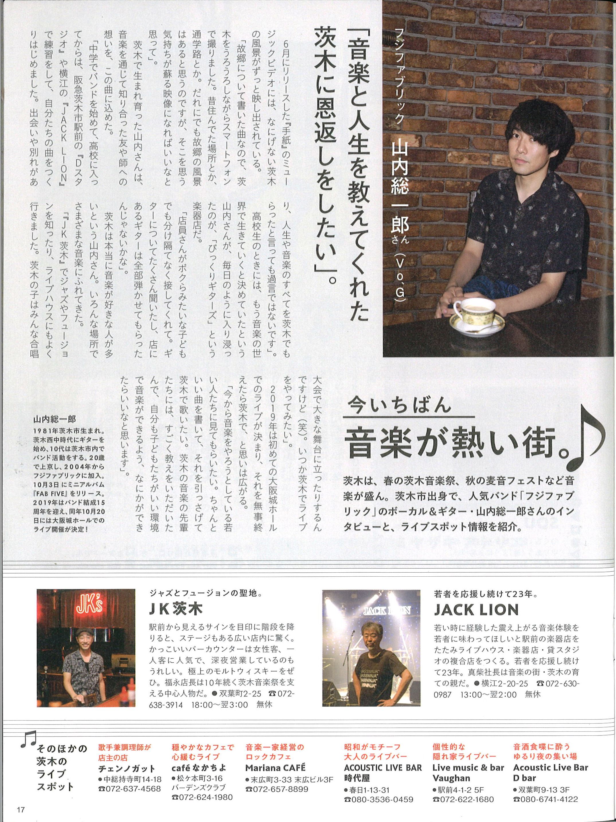 茨木市制施行70周年記念魅力発信冊子「イバイチ!」が発行され総一郎のインタビューが掲載されています。