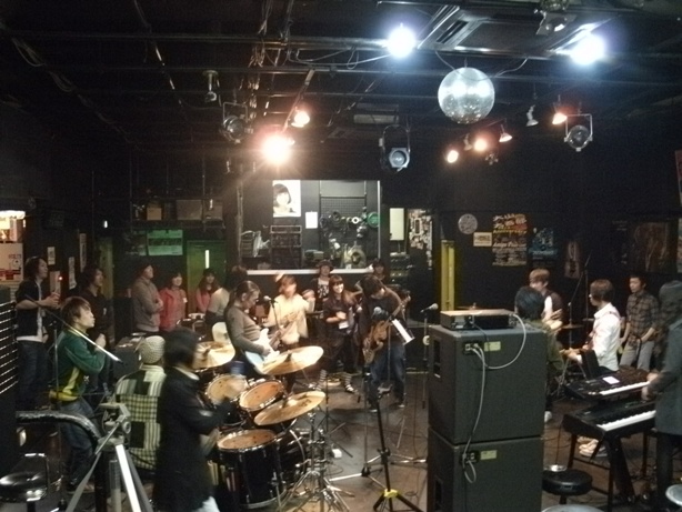 ◆2011/4/5(火) 森園勝敏(Gt/四人囃子) 伊藤広規(Ba/山下達郎) マーティー・ブレイシー(Dr) &ジャックライオン若手バンドマンみんなでセッションデー! ジャックライオンの20歳中心のバンドマン20数人でセッション。 森園勝敏(Gt/四人囃子)伊藤広規(Ba/山下達郎)マーティー・ブレイシー(Dr)という大先輩と一緒にね! セッティングはこんな感じがいいなって思ってヒゲおやじがやりました。2バンド分の機材をホールの客席に丸く囲むようにセッティング。 ヒゲおやじMCで全員の自己紹介とハイタッチでスタート! イェイ!Smoke on the water!まずは3人の「神様」の演奏からスタート。そして徐々にメンバーを入れ替えて・・・きちんとしたアドバイスも入れながら進めていきます。 どんどん打ち解けあって盛り上がっていきます。 全員の質コーナーあり、バトルもあり。課題曲以外に3コードのブルースセッションあり、全員参加であっという間に時間が過ぎていき、 気が付けば3時間経っていました。ワォー!Satisfaction! 最後はみんなで囲んで3人の「神様」(笑)のセッションです。 この距離の生音はありえません。 どこから見ようが自由です。 絡みまくったり。 終わったの、一帯何時だったんでしょうか?覚えてません。 参加したみんから感想文ももらい、3人の神様も元気をもらったそうです。 サイン入りの表彰状も渡されました。 森園勝敏賞:TAKE(Gt/SHIDARE) 伊藤広規賞:あい(Key/ZONK-MONK) マーティー・ブレイシー賞:あーち(Vo) そのまま打ち上げへ。。。至福の時間。 日本ロック史上新たな1ページは確実に開いたよ! さぁまだまだ行くでぇ!!!!! Powered by 忍者ブログ Copyright © [ ヒゲおやじ三面記事 ] All Rights Reserved. http://higeoyazi.blog.shinobi.jp/ |