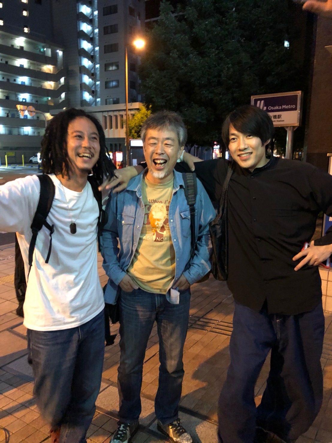 やりたい、出したい音楽や音をひたむきにに奏でようとしてれば、上手いとか下手とか二の次三の次。 「いや、それでも上手いほうが」は、わかるけど、結局最後はひたむきに奏でてる人が残るし、僕は残す。 2018/7/21(土) 大山大吾郎 音楽人生50周年ライブ!at 永信防災会館 僕はいわば舞台監督での参加です。 『この会館でのこのライブ、 きっとカルチャーショック受けますよ。』 なんて言ってたら 一番カルチャーショックを受けたのはこの僕かもしれません。 ここでやるAMIGO'Sヤバいんだけど。 どこで聴こうが気持ち良い! ということは。。。こりゃ弾けるぞ!! 何がって?ステージ上もきっとものすごく音が気持ちよく渦巻いてると思ったんです。 こんな時、バンドはすごいことになる!! しかもオーディエンスも最高!! 大山大吾郎 音楽生活50周年ライブ AMIGO'Sは記録を塗り替える凄まじいライブをしてしまった。 AMIGO'Sと音場の生み出すチカラが凄すぎる!! 大吾郎さん、いつまでも若々しく元気でお願いします! おめでとうございます!! 場所: 飛田新地 この場所でのライブ、想像以上に女性の皆さんに好評で喜んでいただけて嬉しかった。 ◆2018/7/19(木) Spark7 ISAO(Gt) 星野沙織(Vln) 矢吹卓(Key) 瀧田イサム(Ba) SHiN(Dr) この写真はサウンドチェック中のISAOの後ろ姿。 全体の音が出ると。。。あかん、素晴らしすぎて泣けて来た。 サウンドチェックやのに。 そんな一日の始まりやった。 琴線に触れるアンサンブル。 ISAOのやりたいことは、美しすぎる。 バイオリンとの相性がこんなに良いとは! そして今回もキーボードの矢吹くんの存在は大きい。 また記録を塗り替えたでISAOは。 素晴らし過ぎる!! まるで僕も憧れた海の向こうのあの音やった!! 今回初ジャックライオン登場のSHiNくん(Dr)と瀧田イサムさん(Ba) のリズムコンビネーションも無理な爆音皆無であのイケイケ具合!フレーズ全部聞こえるし、タイト!!だからこそ伝わるべきものが全部伝わってくる。 今や世界に飛び出してそのサウンドを奏でるISAO。 ジャックライオンの看板ギタリストと呼ばせてください。 下の写真は先日見つけた秘蔵ビデオの一コマ。ISAO高校三年生。 びっくりギターズにて珍しいTokaiの7弦ストラト試奏中。 ISAOの速弾きは、もちろん注目やろけど。。。彼のバラードに年々感動が増してるのは僕だけじゃないはず。 気持ちが繊細で行動が大胆なひとには憧れます。 が、 気持ちが繊細なのに行動が雑って人案外多くて心配になります。 余計なお世話か。 ◆2018/6/23(土) JACK LION18周年~Mashiba Special~ 出演)ジャマーバンド / FouFou 正直ね、もう言葉ではまとまらないんよ。 ライブは、ステージの展開だけじゃくって、客席の熱量も感動の炎を増大させるやん? そのどっちもを見ながら感動しちゃうわけです。 ライブハウスは絶対いいところ! 東京から関西に移り住んで初めてジャマーを観たヒメノアキラがこう言うた。 「規格外のおっちゃんバンド、ジャマーバンド。ずるい。いいなぁー。」 アキラ、そうやねん。この人ら僕が出会った時から規格外やねん。そして今もずっ~とやねん。すごいやろ? 写真はこの一枚だけ撮っていました。最高のシーンやな。 FouFouとの対バンは大成功や。 いきなりの地震で余韻をバッサリ消されましたが、ようやく落ち着いてまいりました。 さて、 2018.6.16 韻シスト×フジファブリック @なんばハッチ オープニングでステージに上がらせてもらいました。 下の写真は激論リハのこっそりショット。 この二人が同じステージに一緒に立つ。 ありそうで実はこれまで実現しなかったこの瞬間をどれだけ楽しみにしてきたことか。 「やっと」という気持ちと「始まった」というここからの期待。 両バンドを見ながら、この日一日で、何度思って何度口にしたか 「ええバンドやわ~」って言葉。 素晴らしいメンバーと素晴らしいCrewに素敵なお客さんが織りなす至福の時。 その存在がほんとうにうれしくてたまらない一日でした。 メンバー、スタッフのみなさんと交わした言葉ひとつひとつ胸にしっかり刻まれています。 日本中がこんなスタンスのバンドばかりになればいい。 で、写真はそんな最高の一日を終えた最高のふたり。 で、ご機嫌ですっかり僕も爺さん仕立てになっちまった最高の夜でした。 以下、BARKSのライブレポですが・・・ 「茨城」やないけど、そこらじゅうで間違えられてるから慣れてるよね。 【ライブレポート】韻シスト、豪華ゲスト迎えた熱狂の3日間 https://www.barks.jp/news/?id=1000156527 Powered by 忍者ブログ Copyright © [ ヒゲおやじ三面記事 ] All Rights Reserved. http://higeoyazi.blog.shinobi.jp/ |