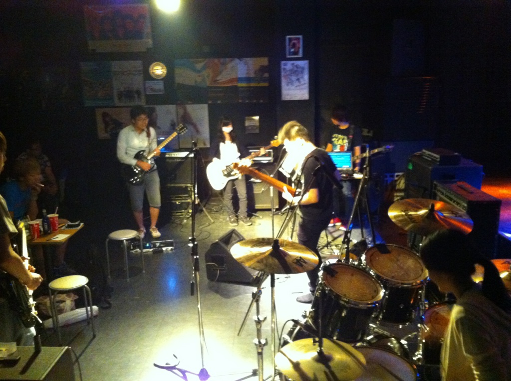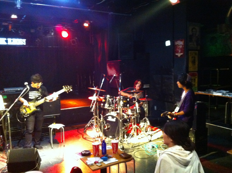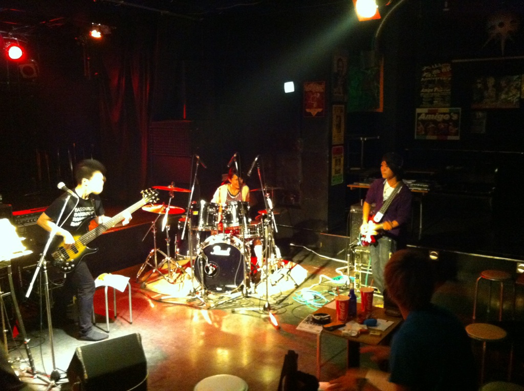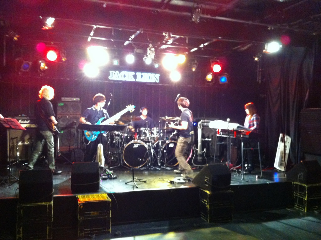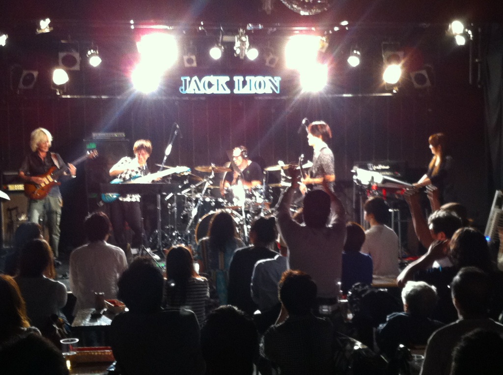 目指す結果が出なければ無駄だったということだ! それが無駄ではなかったというのを知るのはその次に何かに一生懸命になった時。 「今やってることは無駄ではないはず」なんていういい言葉で逃げ道を先に作るのは、夢中でない証拠。 出るはずの結果を逃すことになると僕は思います。 「いい言葉」は怖いのだ。 ◆2014/10/6(月) at JACK LION 金子マリPresents 5th element will 金子マリ(Vo)北京一(Vo,Mime)大西真(Ba)松本照夫(Dr)石井為人(Key) 窪田晴男(Gt/ex.パール兄弟)TAKU(Gt/韻シスト) 昨夜のマリさんのライブのDVDを見ています。 いいライブの日はリミッター解除された面倒くさい自分がそこにいます。 それをDVDで確認してちよいと凹む。 スミマセン。 が、卓のギターに初めて泣いた。 すげぇギタリストに乾杯! 昨夜はありがとう。 音楽の神様が笑ってた。 吉田このみちゃんが赤ちゃん連れてきたよ。 マリさんの言葉実践したのは彼女が初めて。 新しいページが開いた。 夢見ることで生まれる力は、そのまま夢を叶える力になる。 現実なんてあてにならんよ。 そもそも夢破れた人の話しか現実にはそばに無いやろ? 夢叶えた人の話はなかなか聞くことも出来ん。聞きたかったらわざわざそこに出向かないと聞くことが出来ないんよ。 そのことに気づかんと! ◆2014/7/25(金) AMIGO'S 八木のぶお(Hrap/Vo)大山大吾郎(Dr/Per)山田晴三(Ba/Vo/Kari)田中晴之(Gt/Vo) 先月の25日のライブ。 AMIGO'Sのこのコーナー。 まずベースの晴三さんがカリンバを持ち ドラムの大吾郎さんがカホーンに座る。 このコーナーで奏でられる音が年々僕には大きな存在になっています。 静かなアコースティックな響きのコーナーなのですが 生まれる世界がデカくて。 八木さんの天にも届きそうなハープ。 晴之さんのどうしたらそんな優しく弾けるんですかっていうくらいのギター。 リズミカルに豊かなハーモニーとメロディーを奏でる晴三さんのカリンバ。 他の誰とも違う、大吾郎さんからしか感じない土のにおいがする情熱的なカホーン。 果てしない。 ◆2014/7月19日(土) SPARK7 JAPAN TOUR 2014 ISAO(Gt) Thomas Lang(Dr) 大高清美(Key/CASIOPEA 3rd) 坂本尭之(Ba) Guest:TOSHI HIKETA(Gt) ISAO 8弦! Thomas ドラムセット! リハーサル そして本編佳境 どこまでも一心に音楽と向き合い、そして新しいものを生み出す。常に進化するとてつもない努力。 ISAOの姿に毎回感銘を受けます。彼がいなかったら僕はどこかで何かをあきらめてしまってたかもしれません。 昨夜もまたそうでした。 世界を股にかけるミュージシャンが横江2丁目ジャックライオンの4×8mのステージに乗っかって音を出す。正直いろんな面でギリギリです。いやアウトもあります。 だけどISAOは必ずここへ帰ってきてここにいるみんなに生き様を見せてくれます。 そのことがこれからどういう意味や成果を成してゆくのか。とても意味深いものを感じています。 ISAOは7弦から8弦になりました。その1本がどれだけ大きな人間的な意味も含んでいるのか興味を持ってもらいたかったりします。特にISAOを知ってる地元の人に。 うちの箱はイベンターの入らないブッキングばかり。 プロのライブもオープン以来99%紹介紹介の数珠つなぎ。 海外からのアーティストもそう。 だから僕らががんばってアーティストと共にチケットを販売してます。 成功も失敗も自己責任。きっとそれが本来のライブハウスの姿。 頑固に楽しんでます。 ◆2014/7/3(木) 今沢カゲロウ16thアルバム"HOPE"発売記念 BASSNINJA wired TOUR 2014 今日は12名でのワイヤード! Keyも決めず、まずは赤石(Gt)とのデュオで始まり! 今井くん(Gt)が加わり ちゃあ(Ba)が加わる そして、れいこ(Dr)が入り 展開していきます。どこへ行くかは誰にもわかりません。 高校生の小西くん(Gt)、やっそ(Ba)入って じゅん(Gt)がくる カゲロウ氏になにやら動きが・・・ カゲロウ氏のバナナ食い奏法がすべてを決定付けた。 落ちたバナナの処理を見て今日の題名を「3秒ルール」と僕は名づけてみた。 ヒライデくん(Ba)とマコ(Gt)とヒロキ(Dr)が あれっ?中根(Ba)の写真が抜けてる。笑 そんなわけで今日の作品「3秒ルール」は今日の12名の共作で出来上がりました。 中身の説明は要らんでしょ? ってか やっぱ現場で会いましょう! カゲロウさん、ありがとうございました! 『音楽の聞き手の側が、音を聴いてるのか曲を聴いてるのか・・・』 これはネットのインタビューで読んだあるDJの言葉。 そのDJも危機を感じてる。 なるほどその通りやなぁ。 僕のこだわりたいところもその「音を聴く」人の市場をもっと大きくしたいわけや。 そう、バンドやねんから! その比率がもっとええ具合になるはずやという期待が大きいわけです。 まだまだ市場は開拓できる! それが今から叶えたい夢です。 そのために「音」にこだわる人たちの「ホンモノの音」を"生きてるうち"に直に届ける必要があり、 そのためにこれからのライブハウスがあるのでしょうから。 いただきました。 昨日のライブの一枚。 絵になるがな。あざ~す! DAITO ROCK CITY 2014.6.8 at 