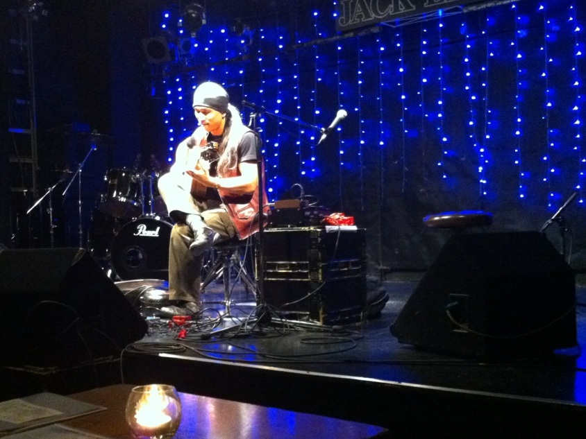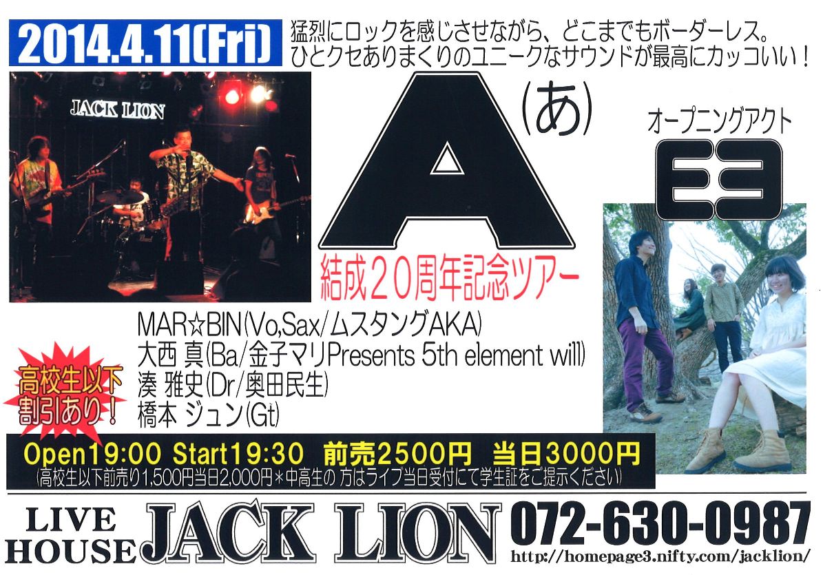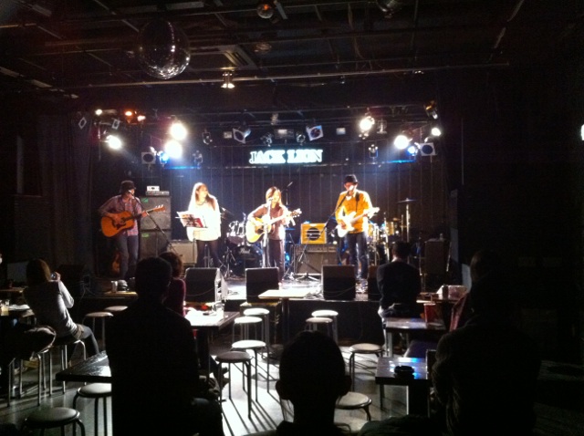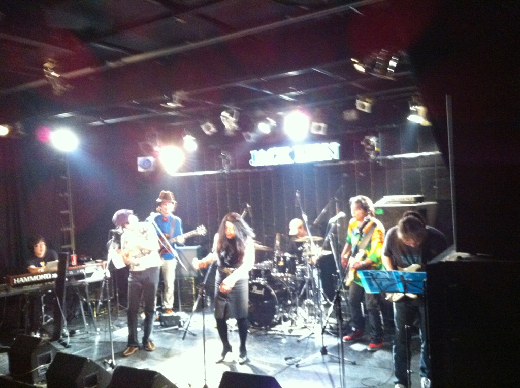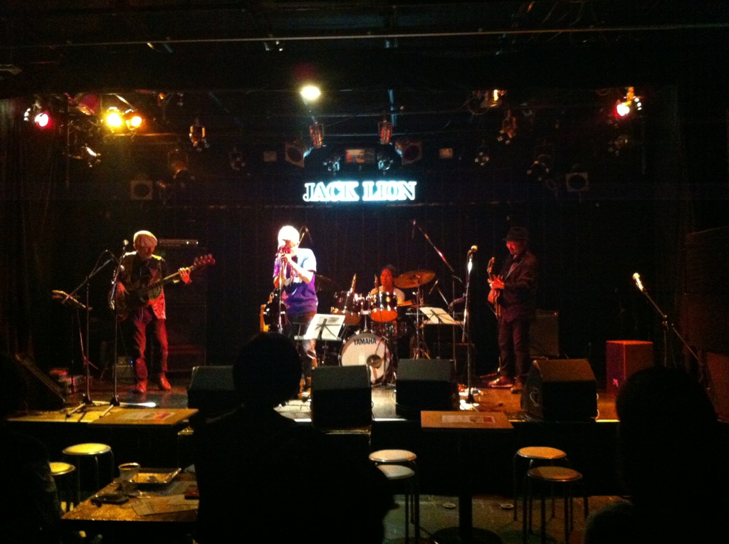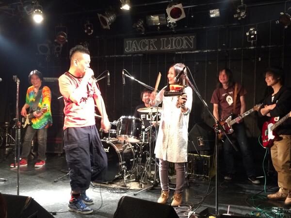 うれしい。 妊娠7ヶ月のこのみちゃんがなんと田中晴之さんのレッスンを受けだしたのです。 エレキだぜ! 事の発端は、このみちゃん曰く・・・ 『お腹に我が子が宿っている事が分かって、その時ふと、 「将来、この子世代の子たちにもAMIGO'Sのみなさんのような素晴らしい音楽を伝えていってあげないとダメだ!私に出来ることを、今から始めないと!」 と思って、すぐさま、晴之さんにメールを送らせて頂きました。 すると、晴之さんは快くOKして下さって! 今日という日を迎えたわけであります。』 ということで。 晴之さんの門を叩くなんてどれだけ勇気が要ることか。 そんなに簡単に受け入れてもらえないよ。 でも、ここまで何年かの積み重ねがこの瞬間を生んだんですよね。 もうすぐ出産を控えるこのみちゃん、 まだまだこの先は長いと思いますが こうやってホンモノの血が受け継がれるであろう事は とてつもなくうれしくのです。 ◆2014/5/24(土) Wise Fool Jam @Jack Lion ISAO(Gt) 矢堀孝一(Gt) 岩永真奈(Ba) 川口千里(Dr) さて、今日の見所(と言っては叱られるが)は、昨日不運にも右手中指を負傷してしまったISAOがピックをしっかり握るだけで痛いくらいの中でどんなパフォーマンスを見せてくれるかであります。 これ、リハーサル中のISAO。 で、本番はと言えば・・・ やっぱ根性決まってます!たんとROCK!! ISAO逆境をもろともせず!!いや~大変だったと思うよ。 でもジャックライオンはこれじゃないとね。 ISAOはすごいよ。プレーだけじゃなくていろんな意味で僕らは力をもらってる。 ISAOがいれば何もかもROCKになるのです。 さ、岩永真奈ちゃんも川口千里ちゃんもブイブイいわしてきます。 千里ちゃんのドラムが勝手に描いてた僕のイメージより何倍もパワフルで感激。ジャックの若手バンドマンたちも大興奮! この小さなからだから。。。清清しい、潔い、思いっきりがよい。 すっげぇなぁ17歳。自分の娘や息子と同じくらいだから余計にいろんなことを感じてしまってぐっとくるってもんだ。 僕くらいの年齢の人はみんなそうかな?だろうな。 そして、今夜のMVPは・・・・ 飲みっぷりもよくMCが120点でノリノリでプレーも最高です! 矢堀孝一!大将!わろた~笑 で、やられた~。 2014年5月20日(火) こんな素敵な場所で こんなことをすると こんな風になる。 そんな人たちがいっぱい集まる場所。 そんな場所に憧れて そんな人を尊敬します。 普段生活してると どこまで言っていいのかわからないこと がよくあります。 でも、ここのママは なんでも言っちゃいます。 物事をはっきり言うというのではなく 言葉にうそがまったく無いという それはそれはナチュラルな言葉なのです。 僕の場合、 一瞬のためらいからか タイミングが悪くなって伝えたいことがそのまま伝わらないことがよくあります。 ですから話さないことにしてたりします。笑 だから学びたいものがここにあったりします。 だから関われていることが幸せであります。 感謝。 そしてこの素敵な頑張りがうれしくて。 ただひたすら頑張った。 いい音だったなぁ。 拍手。 ◆2014/5/18(日) at JACK LION 天月~TENTSUKI~ 湯川トーベン(Vo,Ba) 田中"ヤッチ"裕千(Vo,Gt) 向山テツ(Dr) http://tentsuki2014.wix.com/tentsuki2014 天月。 もうイントロの一発目の音!それだけで客席にいるジャックライオンのなじみのメンバーからは「お~っ!」って思わず声が出たのです。 そのあとは深く深くめり込んでくるのみ。 トーベンさん、テツさん、ヤッチさん、3人から放たれる音、そしてその姿。 僕にはいつ死んでもいい覚悟したものくらいに感じました。 一緒に対バンで出てもらったRUSH LINEはケンメイのバンド。 そして、高校生メンバーがほとんどのOver My 2nd。リーダーはこれまたうちの若手スタッフちゃあ。彼はベーシスト。 彼らとこの時間を過ごせたのはほんとに良かったと思います。 ジャックライオンに新しいセンスが芽生える瞬間。 ジャックライオンは新しいセンスを芽生えるさせる空間。 それは先輩がたが運んできてくれたから感じ生まれるとてつもなく貴重なものだと思えるのです。 多くのお客さんにも恵まれ ものすごい盛り上がりになりました。 対バン:THE RUSH LINE/Over My 2nd 共演:熱い熱いお客さん! ありがとうございました。 自分のやりたいことなんて決められなくてもへっちゃらへっちゃら。 その前にやらなあかんこと山ほどあるやんか。 それ真面目に必死でやってたらだんだん導かれていくから焦るなって。 そういう僕もいまだやりたいことどころかやらなけれはならないことに必死。 でもやりかいあるよ。 充実してるし幸せだよ。 ◆2014/5/8(木) at JACK LION 金子マリPresents 5th element will 金子マリ(Vo)北京一(Vo,Mime)大西真(Ba)松本照夫(Dr)石井為人(Key) 窪田晴男(Gt/ex.パール兄弟)TAKU(Gt/韻シスト) オープニングアクト:吉田このみ(Vo&AG)&赤石茂樹(Vo&Gt)&久保田恵美(Vo)&小西誠(Vo&Gt) こういう日が来るんだなって、静かに熱くそう思いました。 金子マリさんがジャックライオンに来ていただくようになって