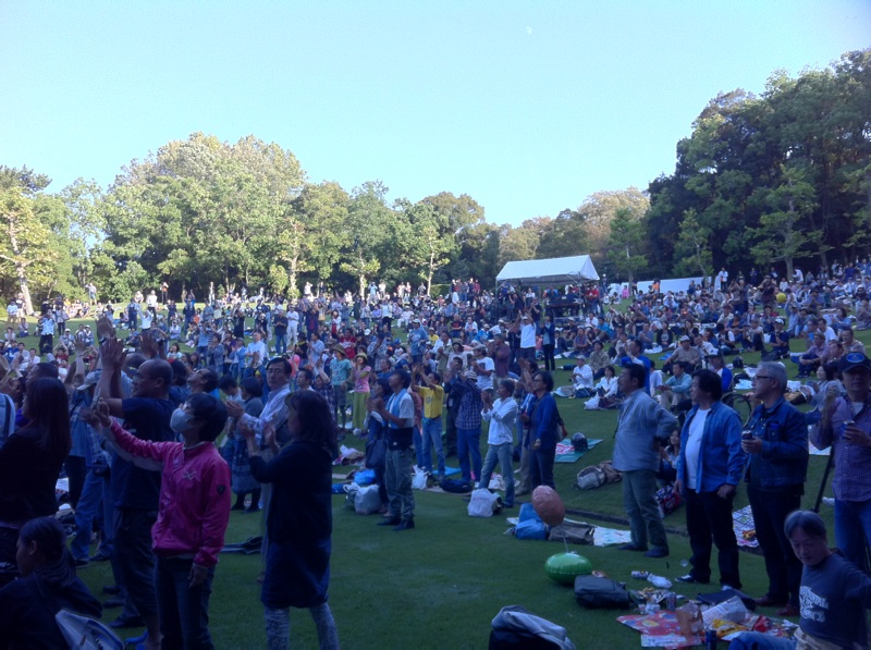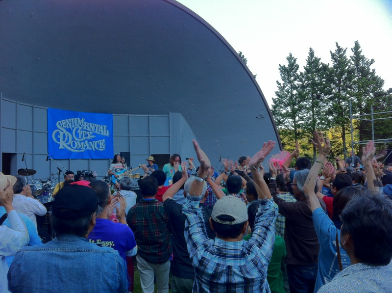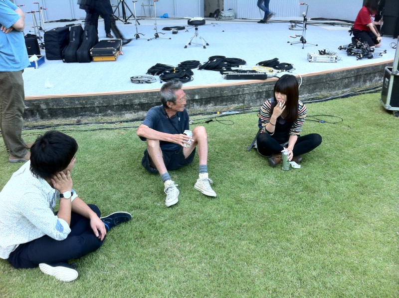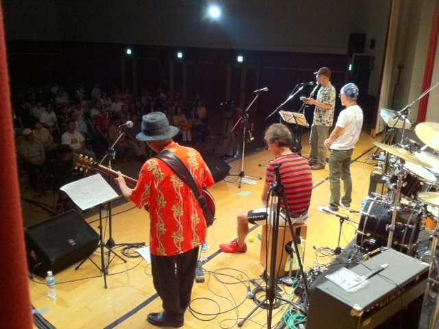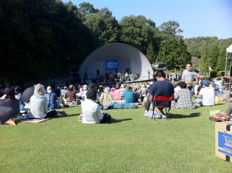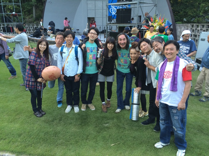 at 愛知県森林公園 芝生がふかふか、 センチがほかほか。 40周年フリーライブ。 お気に入りの丹後宮津のオイルサーディンもちこみ。 なにがよかったって、 「一緒に行きたい」って自主的に言ってきたのが みんな若いやつだったってこと。 昨日のライブでは、ほんとにジャンルも世代もなにも垣根がなかったように感じました。 日本にこういうバンドがあって、こういうバンドをずっと好きでよかったって、 芝生に寝転がりながらしみじみ思ったのでした。 督さんは初めて会ったときから何年経っても調子いいしね。(笑) それと、昨日は僕が初めてセンチに出会ったときのドラマーである近藤さん(写真右端)に会えたのがうれしかったなぁ。 この図が最高にいいね。 太陽の賛歌♪すごかったね。若者もどっぷり呑み込まれてた。 一度気に入ると・・・気になり・・・知りたくなる。 そう9/23に茨木であった「麦音」っていうイベント。 地ビールを楽しみながら音楽を一緒に楽しんじゃおうっていうイベントで、全国の地ビールと茨木の美味いもん処が集まってて、『美味しいビールと美味しい食べ物』って言う最高に入りやすい「入り口」が用意されてるんですが・・・ さて音楽はといえば、真昼間から平気で日本を代表するようなプログレッシヴバンドが演奏してるっていう日本最強くらいにマニアックで(笑) とにかく、そこで今回出合った地ビールが美味しくて。 その銘柄は、京都京北周山町にある羽田酒造の「周山街道地ビール」 お味は三種類。 実はそこいらで手に入るビールじゃなくて、先週は京都で売ってるショップに買いに行ったくらい。 家に持ち帰って飲んでみれば、その場で樽から注いでもらうのよりは少しは落ちる気はしたけどやはり美味しい! で、イベントのときのスタッフの方がとてもいい感じ(そりゃ10杯以上飲みにくれば愛想も良くなるわな笑)だったのでどうしてもこの美味いビールをつくる会社も気になって、今週はとうとう行って来ました! 山を越えて。 ここです、羽田酒造。 ショップがあるわけではなく古い木造の事務所に案内されて色々お話もさせていただいて和やかムード。 思ってた通りの雰囲気。あぁこのビール好きになってよかった!と。 持ち帰りのビールの注文。 知りたくなるから来ましたが、ここまでしてほんとに納得!そして満足!! このビールとのお付き合いは始まったばかりです。 ありがとう麦音フェスタ! 厳しいことを言っても 家に帰ったらツイッターで愚痴つぶやいて ガス抜きされて終わるだけやけどね。(笑) 今も昔も楽すりゃ堕落。 でも、 ほんまに楽しかったら 苦を越えられる。 そう、 苦になんて感じないし むしろ楽しいと感じるはず。 それも、今も昔も変わらない。 苦しいのは越えずにそのままその場にいること。 そこでみんな楽しいフリをしてること。 いまや高校生の頃から 音楽もやっぱり「人」・・・って 僕みたいなおっさんが言うような言葉が先行してて。。。 そうしてるうちに「人」っていうのが 自分にとって「都合のいい人」にばかりになってて 居心地はいいんだろうけど 「楽」と「楽しい」は違うんやで、「音・楽」。 ◆2013/7/20(土) "Sentimental City Roamance 40周年LIVE"~えんでにゃ~の!大阪~ センチメンタル・シティ・ロマンス :告井延隆(Vo&Gt)中野督夫(Vo&Gt)細井 豊(Key)野口明彦(Dr)瀬川信二(Ba) センチ40周年。 僕の信じた32年は正しかったんだ。 そんな40周年。 でも、気を緩めてはいけない今日の40周年。 アンコールでの「うちわもめ♪」でみんな我慢できなくて立っちゃった! いいなぁ。 この感じ、僕の知ってるライブハウスだわ! 予定外だったことは、あの福岡風太さんが舞監だったこと。 そして別れ際に「よくやったよ」って言ってもらえたこと。 それはやっと「ライブハウスやっていいよ」っていう一言をいただけたことに等しいと感じました。 その言葉を胸に僕なりに続けていきます。 ありがとうございます。 最後に初めて「写真撮っていただいていいですか?」とお願いしました。 ◆7/17(水) 鈴木トオルA!CLOVER 鈴木トオル(Vo.Gt/LOOK)江口正祥(Gt)伊藤広規(Ba)向山テツ(Dr) オープニングアクト:ローリーポーリー 記録写真獲るとこも忘れてました。 広規さん、テツさん、ありがとうございます! トオルさん、最高! 江口さんウハウハ! 予感ってあるんです。 期待とは別に。 昨夜の鈴木トオルA!CLOVERのライブはまさに予感が的中。伝説的な日になったんじゃないでしょうか? お客さんとバンドで高速キャッチボールが生まれて、そのやり取りに。。。 もうやられまくりの日でした。 きっとジャックライオンならではのライブになったんじゃないかと思うと胸が熱くなりました。 泣いた。 一緒にライブを作っていただいた皆さんありがとうございました! 追記 スタッフの方からいただきました!写真。 ◆2013年7月16日(火) 向山テツドラムクリニック「テツだよ~ん。」 向山テツ師匠。 そして高兄、涼介。 他にも個性あふれるドラマーが参戦してくれた向山