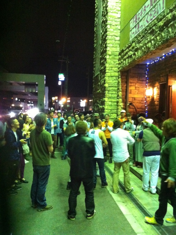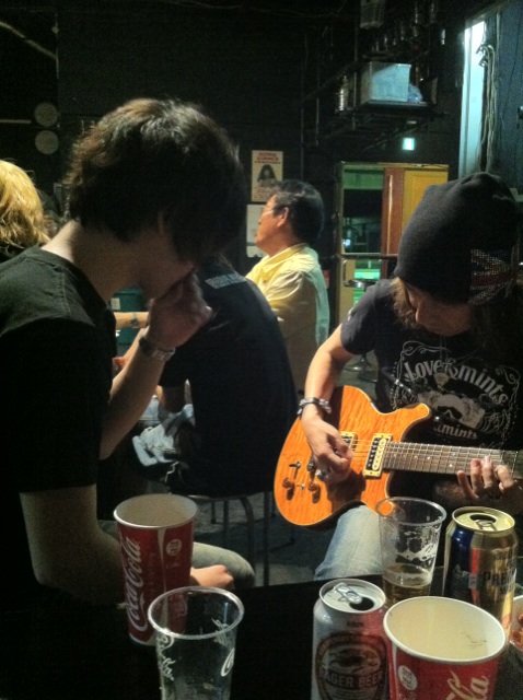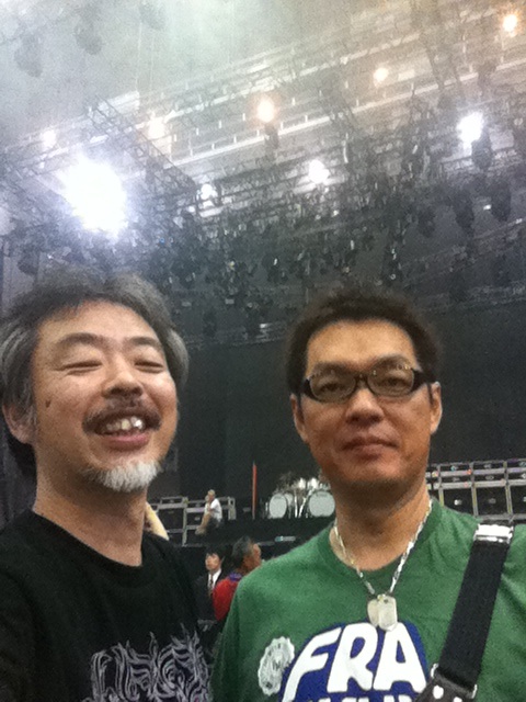 ひとつだけ。 今日のライブ「撮ってもいいよ!」だったんよ。 日本じゃ珍しい。 とってもうれしい計らい。 そしたらさ、慣れないことでしょ? みんな撮る(思い出記録)のに必死。 声入るから黙るとか。 ぶれないように動かないとか。 思い出の曲だといっせいにカメラが上がる。 まだまだやね。 この先。 あれだけのアーティストでありエンターテイメントを 生身の人間のまま持ってきてくれてるのに 僕らも生身で応えようよ。 いいやん叫び声入ったって。 いいやんぶれたって。 いっぱいお金払って、いっぱい声援して、いっぱいいい顔見せて もっとすごい、どこにも負けないいいもの見せてもらおうよ。 それが今日のライブ。 今日のライブのために今日あそこに来てくれてるんだから。 ありがとうVH!!!やっぱりデカイです、あなた方の背中。 ◆2013.6.24(月) at 大阪市中央体育館 同じお祭りの金魚すくいで捕ってきた金魚も 小さな水槽か大きな水槽か、はてまた池に放つか それで金魚自身は意識しなくても 成長したときの大きさがまったく違う。 池にいきなり放つと鯉に食われるとかのリスクも含めて。 そんなことをいつも考えてます。 ライブやバンドにおいても昔から。 そうです。今日はそれを確かめに行って来ました。 やっぱりその通りでした。 エディに出会えるような仕事をしたいです! 突入前の栄養補給!いくぞ、VH!!at 大阪中央体育館前ローソン ある曲で見たあのエディーの笑み。あれだけでも今日のチケット代を上回る。あとの頂き物は得でしかない。あんな楽しそうな笑みを見せらる生き方したい! 事前情報でここは撮ると決めていた。JUMP!イントロでは何も起きなかった。 GTソロあけ、特効はこれでもかと言わんばかり!曲の途中で打たれたのに曲が終わってメンバーがいなくなり客電点いても降ってきてた。スケールでっかい!憧れはまさにここにあり!!この写真でっかくして見ると涙もん!!! 内P楽しかったな! 板やん、ほんとありがとう!今日のライブで近いのにものすこく大きなスケールを味わった。遠くから見なくても大きなものは、やっぱり大きいんやね。 当たり前かもしれんけど、僕には大きな一日になりました。 照明さん、お疲れ様です!ありがとうございました!! PAさん、お疲れ様です!ありがとうございました!! 特効! スケールが違うぜ!!大きくなれそう!!ありがとうVH!!!で、打ち上げー at 大阪中央体育館前ローソン。 後日追記・・・ 「ひとつだけ」 今日のライブ「撮ってもいいよ!」だったんよ。 日本じゃ珍しい。 とってもうれしい計らい。 そしたらさ、慣れないことでしょ? みんな撮る(思い出記録)のに必死。 声入るから黙るとか。 ぶれないように動かないとか。 思い出の曲だといっせいにカメラが上がる。 まだまだやね。 この先。 あれだけのアーティストでありエンターテイメントを 生身の人間のまま持ってきてくれてるのに 僕らも生身で応えようよ。 いいやん叫び声入ったって。 いいやんぶれたって。 いっぱいお金払って、いっぱい声援して、いっぱいいい顔見せて もっとすごい、どこにも負けないいいもの見せてもらおうよ。 それが今日のライブ。 今日のライブのために今日あそこに来てくれてるんだから。 ありがとうVH!!!やっぱりデカイです、あなた方の背中。 ◆2013/6/21(金) AMIGO'S 八木のぶお(Hrap&Vo)大山大吾郎(Dr/Per)山田晴三(Ba/Vo/Kari)田中晴之(Gt/Vo) オープニングアクト:Migeo 昨夜のJambo!(正確には♪Jambo Bwana♪ですね。Youtubeでもいろいろ聴いたり見れたりします) 50になるおっさん(自分)がティーンエイジャーにけしかけて一緒にフロアをぐ~るぐる。昨夜は「止まるなー!」って叫んでました。 ライブを私物化しているのではなかろうか?迷惑でなかろうか?とふと思うこともしばしばですが、なぜかこの曲のときばかりはこうなっていしまいます。 この曲の原点にその秘密があるような気がしますし、それを伝えてくれるAMIGO'Sがすばらしいとしか思えないのです。 昨夜は東京からツアー中のすなっぴ~(砂山)もライブを見に来てくれてたし、初参戦の桑田もうれしかったです。 そのほかにも最近の出会いの中での大切な方も多く来ていただいてて・・・感無量。 “こんな感じに憧れ、こんな感じを目指すのが日本標準”にするべく明日からもより一層頑張ります! 言いたいのはわかるけど胸に秘めといたほうがいいことまでもついついツイッターとかでつぶやいちゃうのはもったいないよ。 だってガス抜きみたいになっちゃってて、せっかくの膨らんだ思いが普通の大きさまでしぼんじゃってるやん。 それじゃぁその先が・・・。 むしゃくしゃしてるままでおいで。 演る側と見る側、双方が力を持ち寄って突き合わせて初めて「LIVE」になると思ってます。 昨夜はまさにそれの結晶。 全力出し切ったのでお釣りもありません。 幸せという副産物だけが体の中に残っています。 これが最後には・・・。 2013/6/11(火)シド・バレットを唄う会 出演:Washing Machine メンバー:野口新(Vo.Gt/Baby Krishna Love