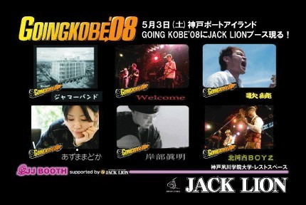 人には生きてきた時間の分だけ時間をかけて育ててきた「大切な根っこになるもん」が出来るんやろうな。 その心の表れを「頑固」っていうんじゃないんかなぁ? 頭を固くしてるわけじゃないんよ。大切なもんを守るひとつの防御なんよ。たぶん。 でも、若いやつらの本音を聞き出せるおやじでいたいねぇ。 新しく生まれてくるもんには、いつもいい感じで裏切られたいしなぁ。 黙ってるのは、キミらの本音をこそっと聞きたいからや。 話はそれから・・・イヤラシイやろ?(笑) 2008年5月3日(土) 神戸ポートアイランド -ワールド記念ホール- -神戸夙川学院大学- 縁あって初めて参加させていただいたGOING KOBE。 PA屋のように常に移動できる機材も車も持たない僕らにとっては、機材の段取りから実は結構大変でしたが、参加してほんとうによかったイベントになりました。 ヘンなことを言うようですが、GOING KOBEに集まってくるお客さんにとって、このJJブースは「真のアングラブース」だったと思うんです。 ぶっちゃけ・・・万の人たちが集まるといえども、これまでの流れからその人たちの「お目当て」になるアーティストがこのJJブースの出演者ラインナップにあるとは到底思えないわけで・・・。 でもね、先日書いたように「全員の音と匂いには絶対的な自信あり!」なんです。それが「万が一」にでも誰かに届けば・・・そんな思いでした。 スタッフには準備段階から「あぁ~そんなん勢い勢い!」「やってもうたらどうにかなるで!」なんて言ってたのは、あんまり神経質になると物事は先に進まないからであって、本当は前日乗り込みで仕込み後の仮眠はマジで一睡も出来ませんでした。実は僕が一番神経質なんですよね。 さて、一番考えたのはどうやってあのJJブースに足を運んでもらうかでした。 チャンスはきんじさんの「せっかくやからビールでも売れば?ライブハウスやし」の一言から生まれました。「えっ?!いいんですか?!」ってな具合で。 ついては承認の上、ブース内で生ビールとポップコーン、手作りプリンの販売をすることに・・・。 ありがたいことにビールを求めて多くの方がブース内に入ってきてくれます。もちろんすぐに出て行かれる方も多かったのですが、「みんなが休憩がてらにでもゆっくり音楽を楽しめるスペース」ということでストリートブースといえども昔ながらのライブハウスのイメージにしようと神戸夙川学院大学の学生さんたちの協力で椅子&テーブルを出したことが、「まぁ一旦ここでゆっくりしていくか。」ばかりにテーブルがうまっていきます。 また外で購入された焼きそばやお好み焼きをもってこのブースに入られた方もムチャクチャ多かったんですよね。これもよかった。(でも、おかげで予想外のゴミ箱の整理に追われましたが・・・) ステージや物販はスタッフに任せて、僕はライブ中、曲やアーティストによりひとつしかない扉を開けたり閉めたりして少しでも「きっかけ」が作れるようにもしていました。ここにいてくれる人にいい音を届けたいから扉をいっぱい開けてしまうと、他のブースの音がかぶってくる。とはいえあまり締め切るときっかけが作れない。内から外へ漏れていく音もきっかけの重要な要素ですからね。 でも、なにせ初めてのことばかり。段取りや設営作業でからだはガタガタ(笑)でしたが、目の前で起きる展開に頭の中では、反省やアイデアなどなどいろんなことを考えていました。 そんなこんなで、一日はあっという間に過ぎていったのです。 で、一夜明けた今日は、mixiで検索などを・・・。 見知らぬ方ですが、うれしい日記も閲覧させていただきました。 セックスマシーン/STANCE PUNKS/コザック前田/怒髪天/No Regret Life/ジッタリン・ジン/フラワーカンパニーズ/ LONELY↑D /TRICERATOPS/SCOOBIE DO/森山未來/倭製ジェロニモ&ラブゲリラエクスペリエンス/ガガガSPと最初から最後までいろんなところをしっかり見て回られたお客さんの感想の日記。 その中にこんなようなことが書いてあったんです。 『喉の渇きを覚えてたまたま入ったJJブースなるところで聴こえてきたアコギの音色に一発でヤラレタ。 あまりの心地よさに自分が何をしに来たのか一瞬忘れた。個人的は今日観た中のベストアクトだったと思う。』 岸部さんのことですよね。うれしいじゃないですか!この「たまたま」。 また、買ってきた食べ物持ってきてなんとなく座った人・・・まさか世界第二位のギタリストの音をBGMにして焼きそば食べてるなんて知らないわけでしょ?オモロイやん。 こんな話も入ってきました。 あるメジャーアーティストのベテラン専属オペレータのかたが、たまたま立ち寄ったJJブースで他のブースでは絶対ないノリに出くわしてそのまま最後のバンドまでいてしまった。 って。そのきっかけになったバンドがWelcomeだったそうです。 「他にはないノリ」、まさにJJブースのコンセプトじゃないですか! 僕らJJブースは、このイベントに足を運んでくださる人たちの今